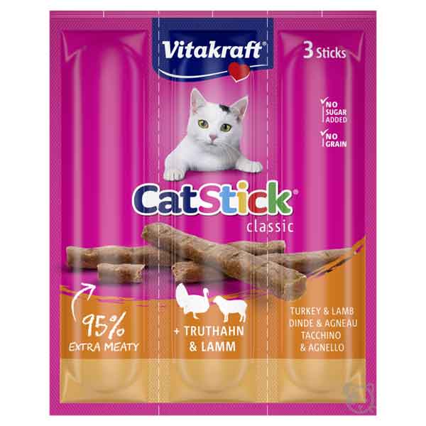 | 4777602 | SNACK PER GATTI 'CAT-STICK' VITAKRAFT 18 gr, Gusto tacchino e agnello - Conf. 3 pezzi | CF | 20 | 20 |
